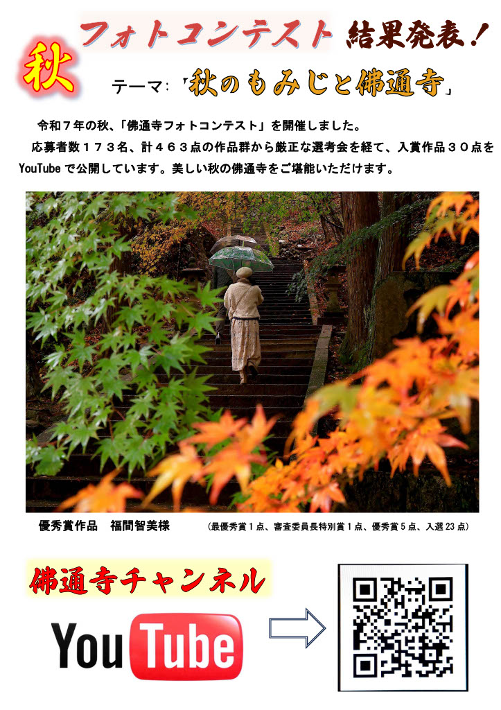 佛通寺の秋景色や境内の静けさ、季節の移ろいを見事に捉えた作品が数多く寄せられ、改めて皆さまのまなざしの温かさを感じる機会となりました。